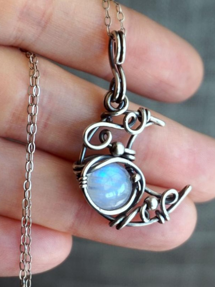 Vintage Boho Moon Inspired Moonstone Necklace