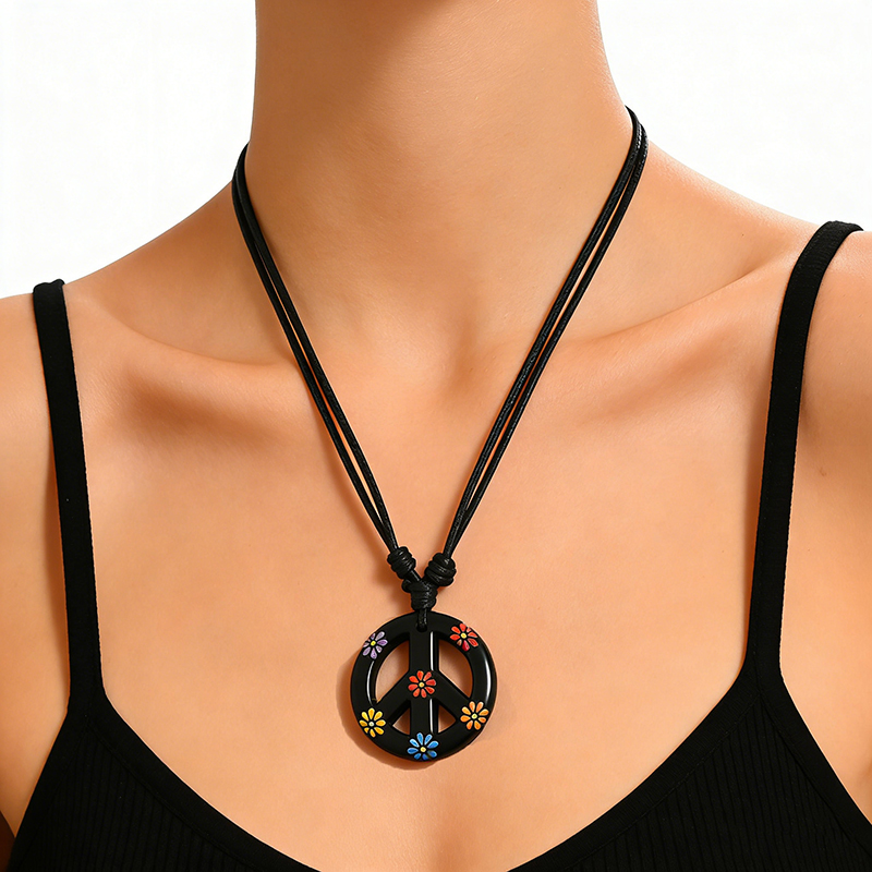 Bohemian Floral Peace Symbol Necklace