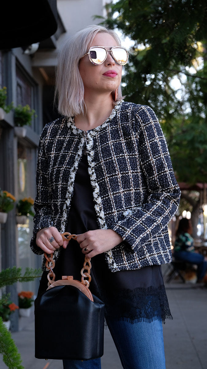 Black Sequin Lace Ruffle Dress by Jennafer Grace