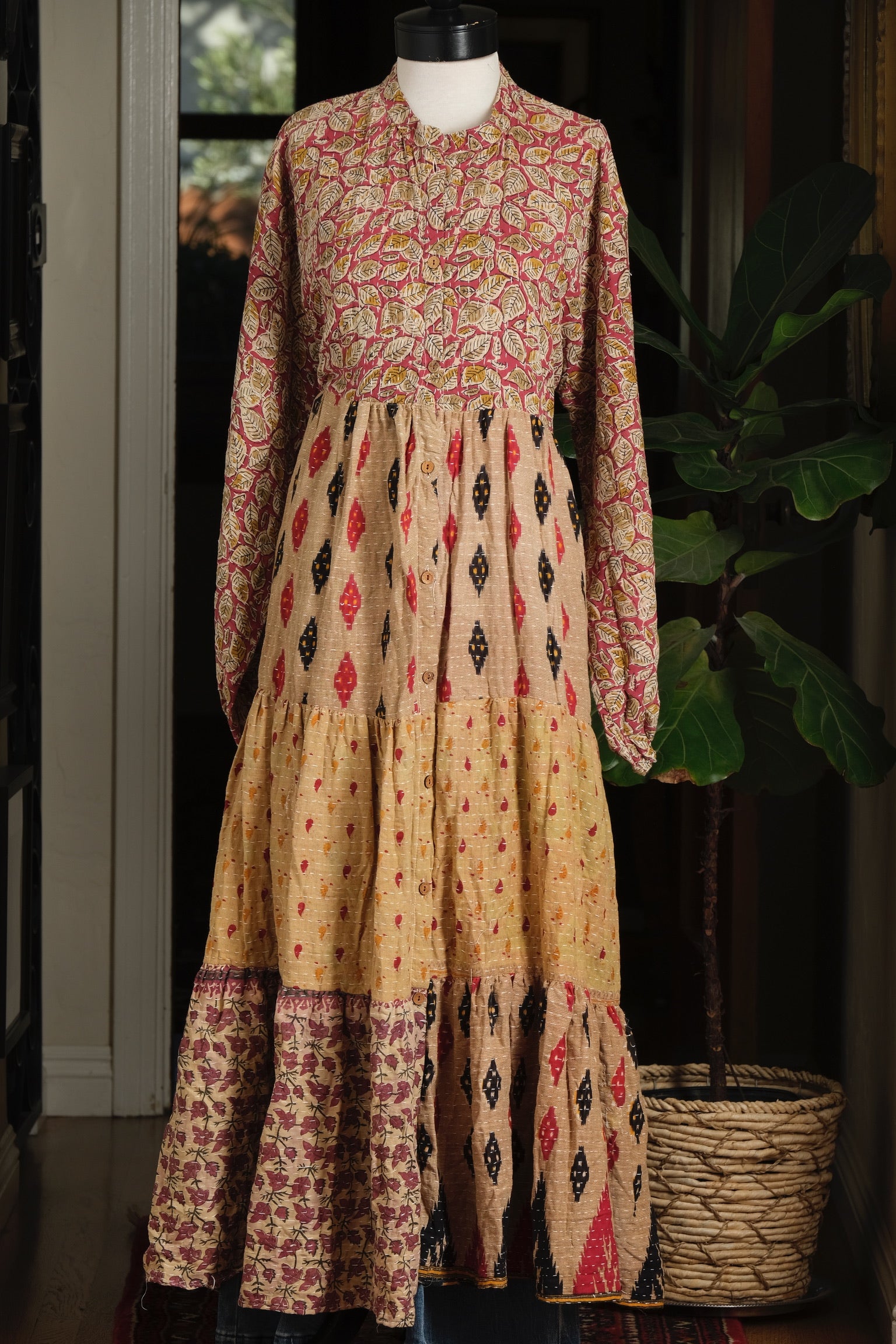 Majestic Duster Dress in Natural Red Leaf