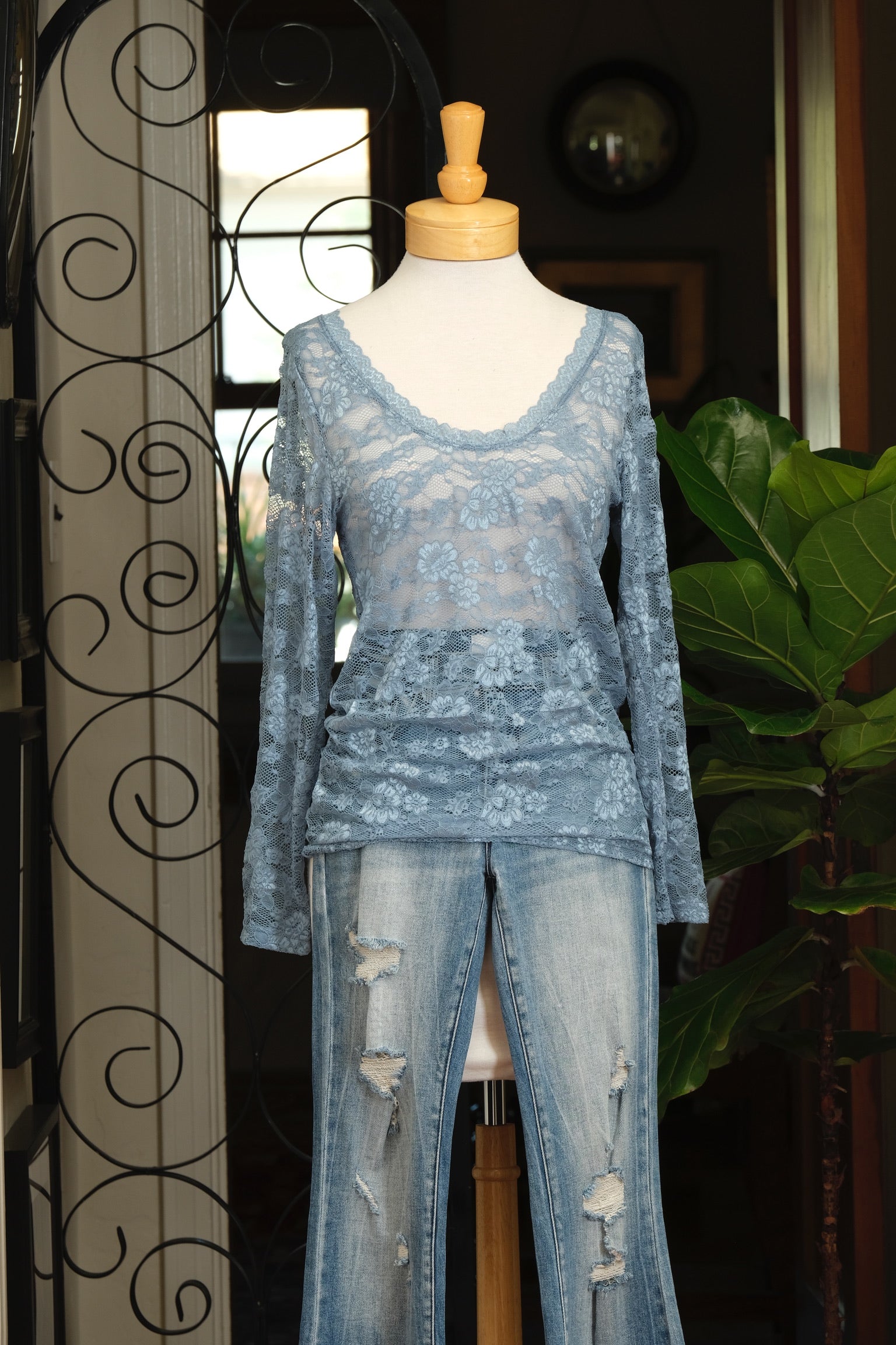 Lace Layering T in Denim Blue