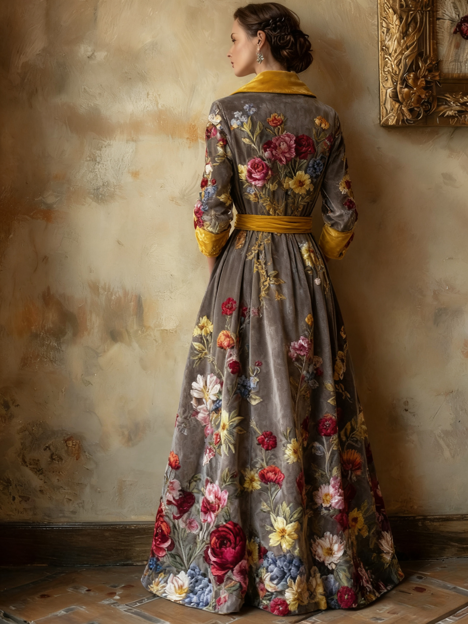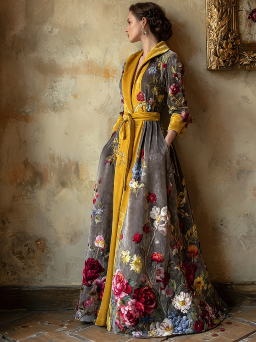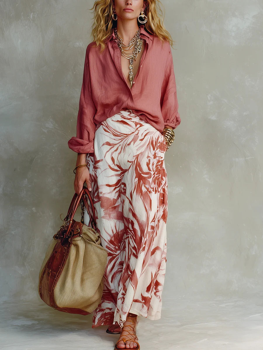 Women's Floral Casual Stylish Art Print Long Sleeve Shirt Top And Skirt Set