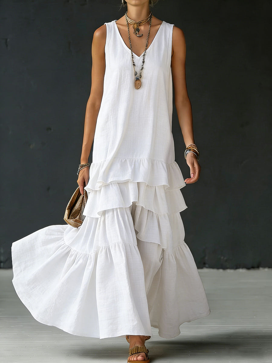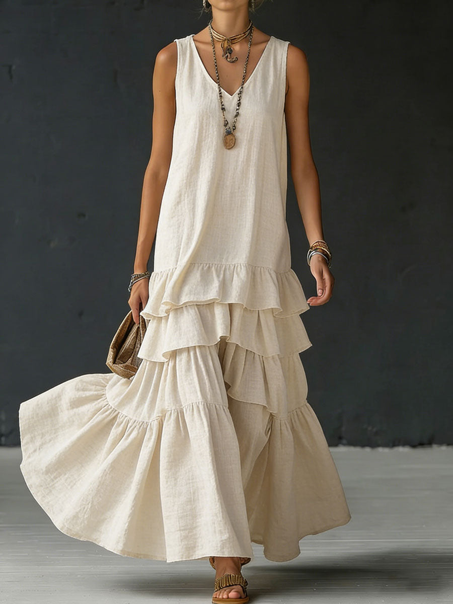 Women's Cotton And Linen Loose-fitting Solid Color Vest Dress