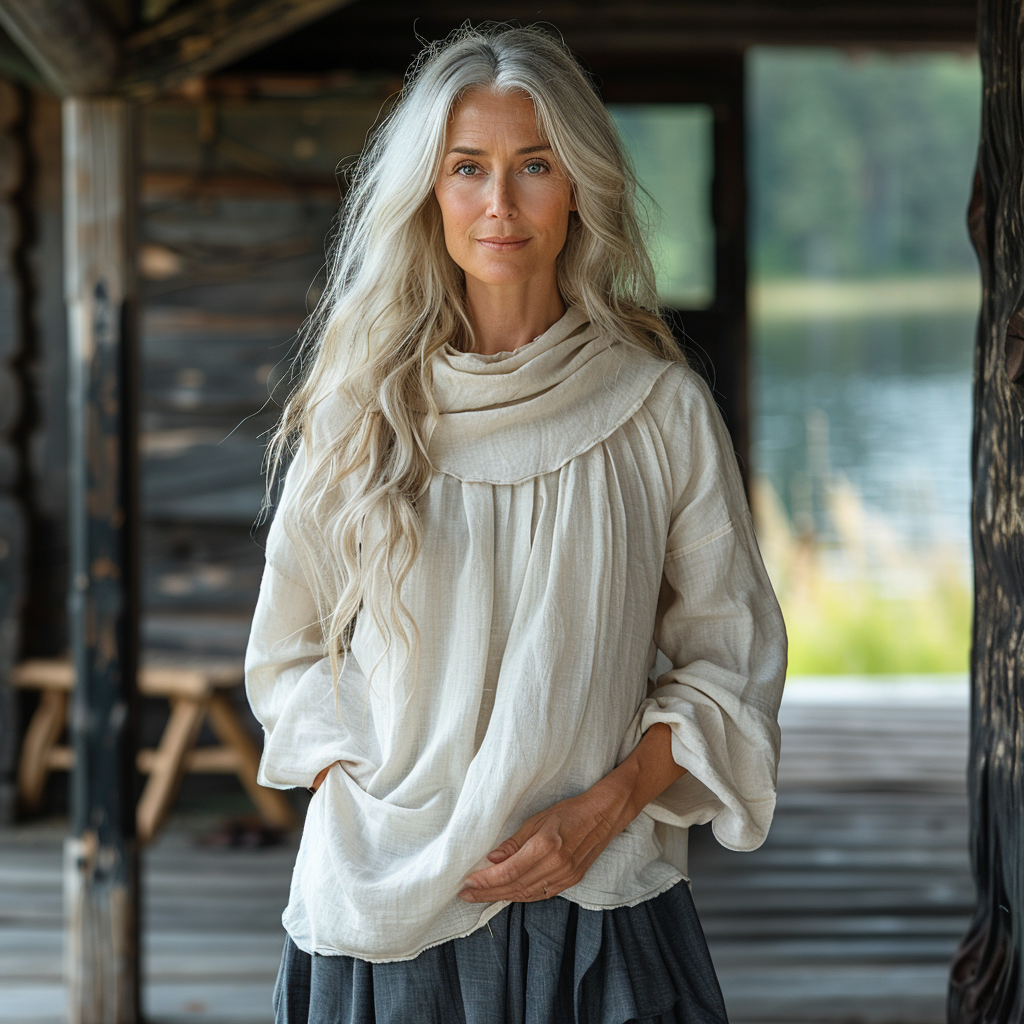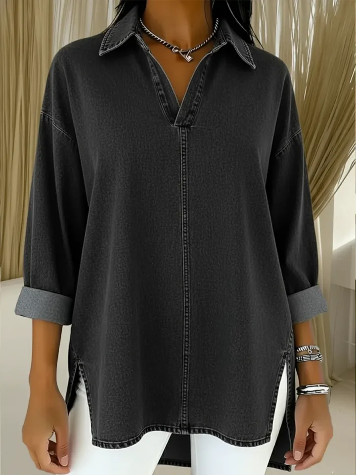 Women's Linen Elegant Casual Loose Pile Collar Long-sleeve Pullover Top Shirt