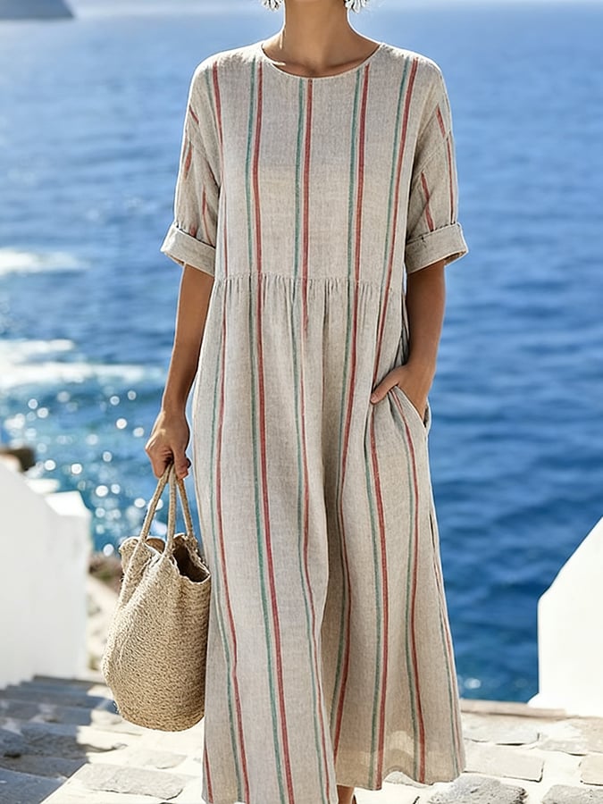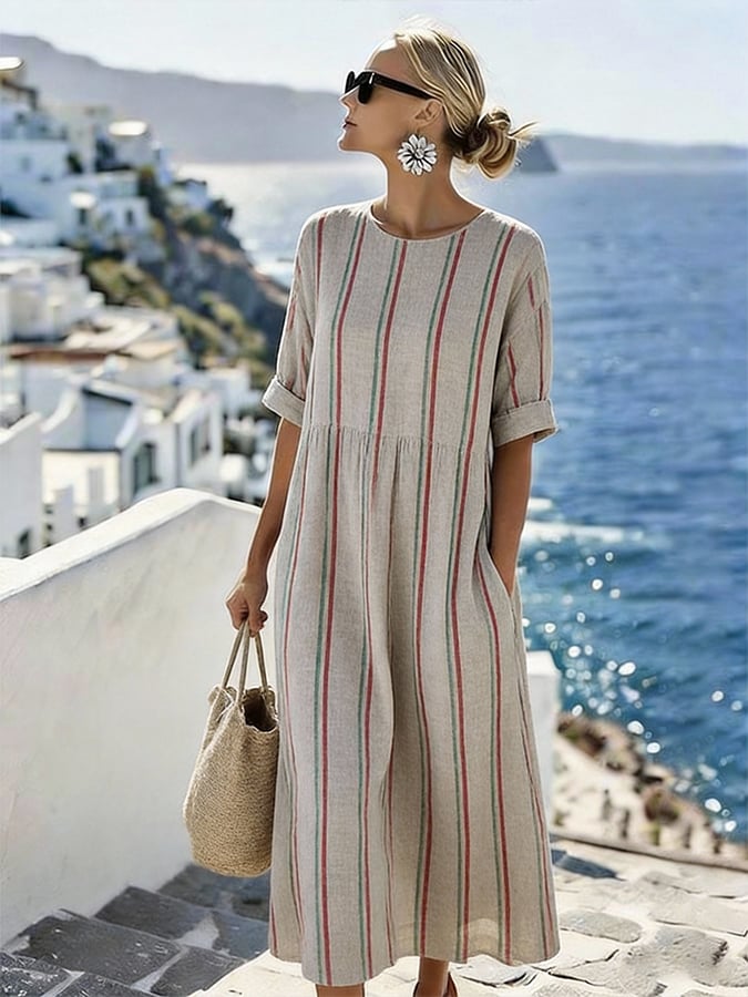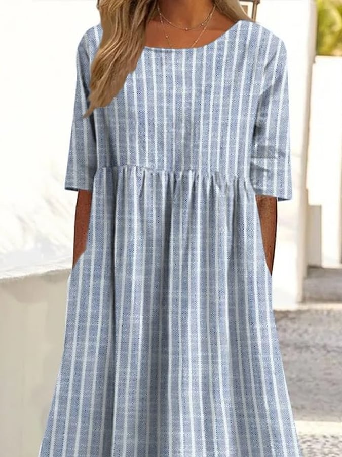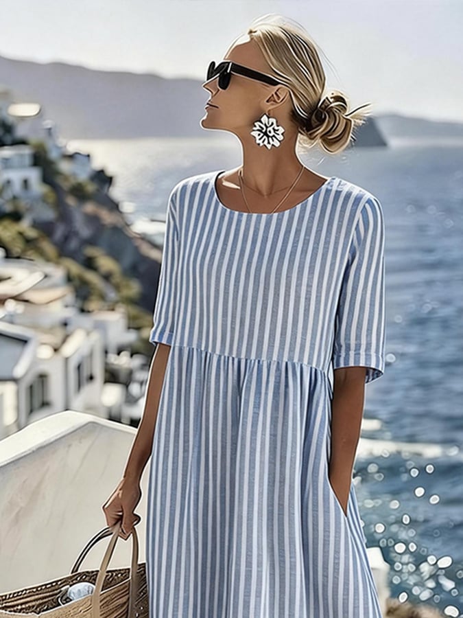 Women'S Casual Round-Neck Striped Vacation Dress