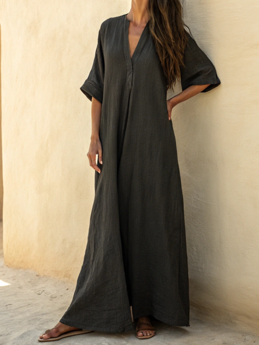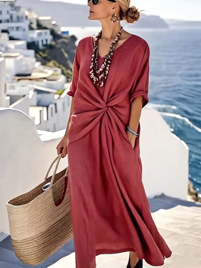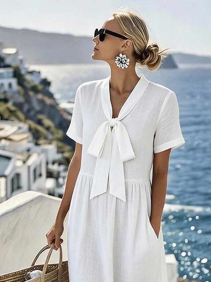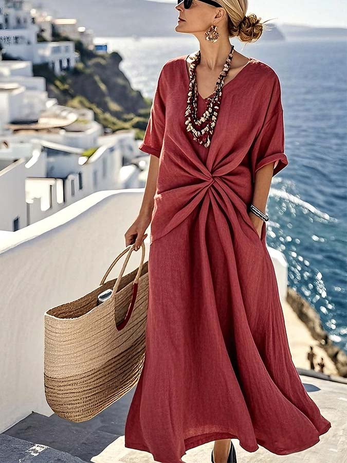 Women's Solid Color Retro Casual Stylish Vacation Cotton Dress