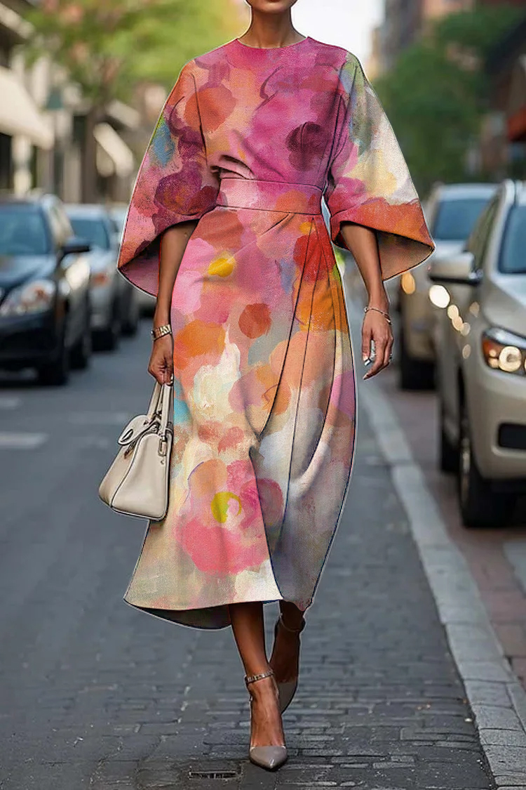 Women's Vintage Elegant Japanese Crane Print Midi Dress