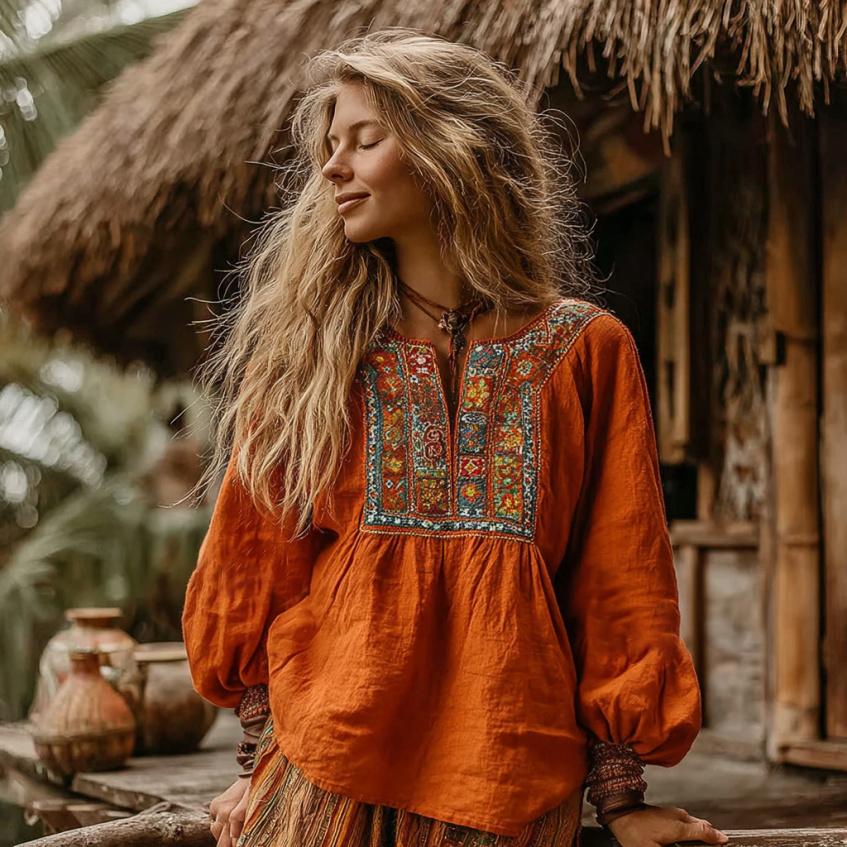 Vintage Bohemian Style Linen Long Sleeve Shirt