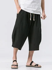 Men's Vintage Japanese Pocket Cotton Linen Casual Capri Pants