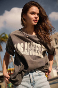 Los Angeles Distressed Vintage-Wash Graphic Tee