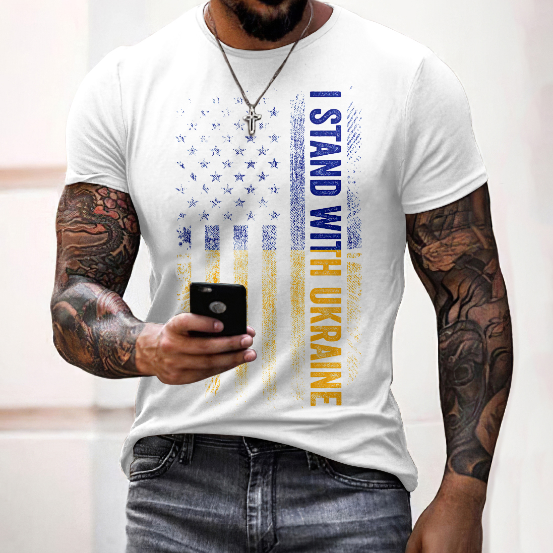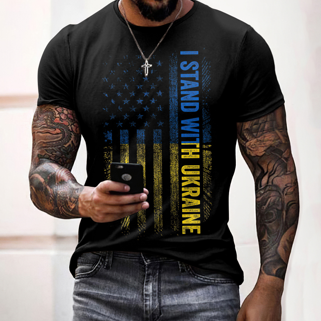 Men's I Stand With Ukraine Print Casual T-shirt