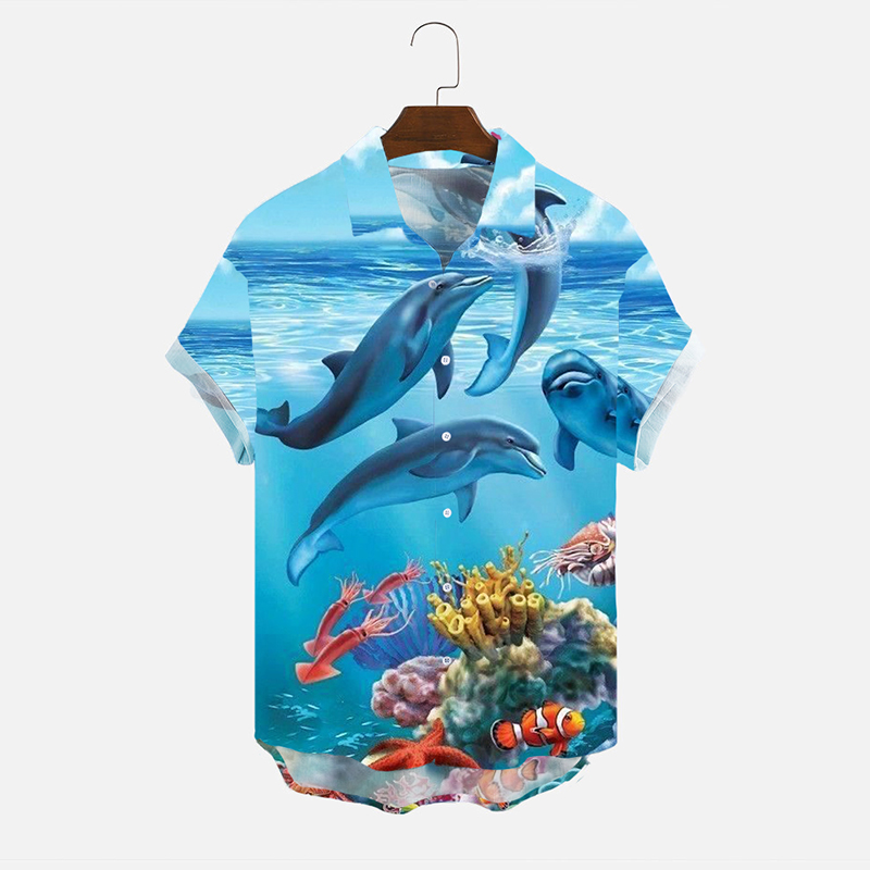 Men's Undersea Creature Print Casual Button-down Shirt
