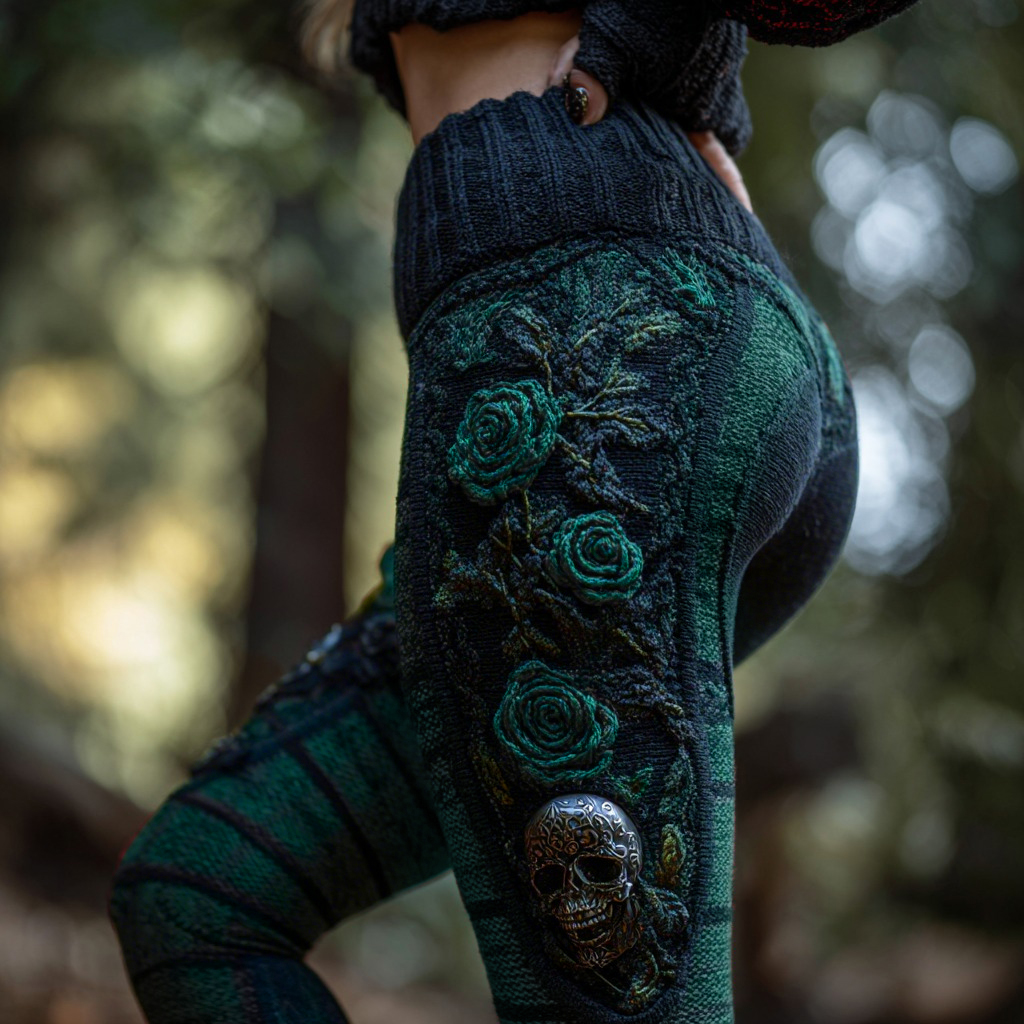Women's Vintage Sugar Skull And Rose Pattern Comfortable Leggings