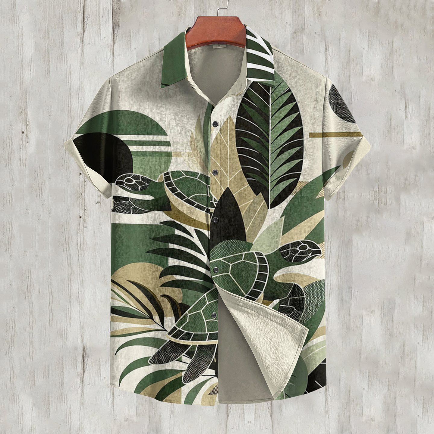 Vintage Geometric Palm Leaves Abstract Turtle Print Short Sleeve Men's Shirt
