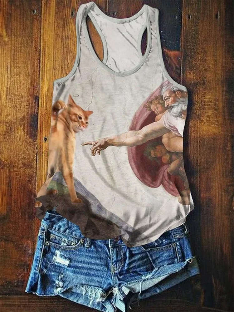 Vintage Funny Cat Art Print Casaul Tank Top