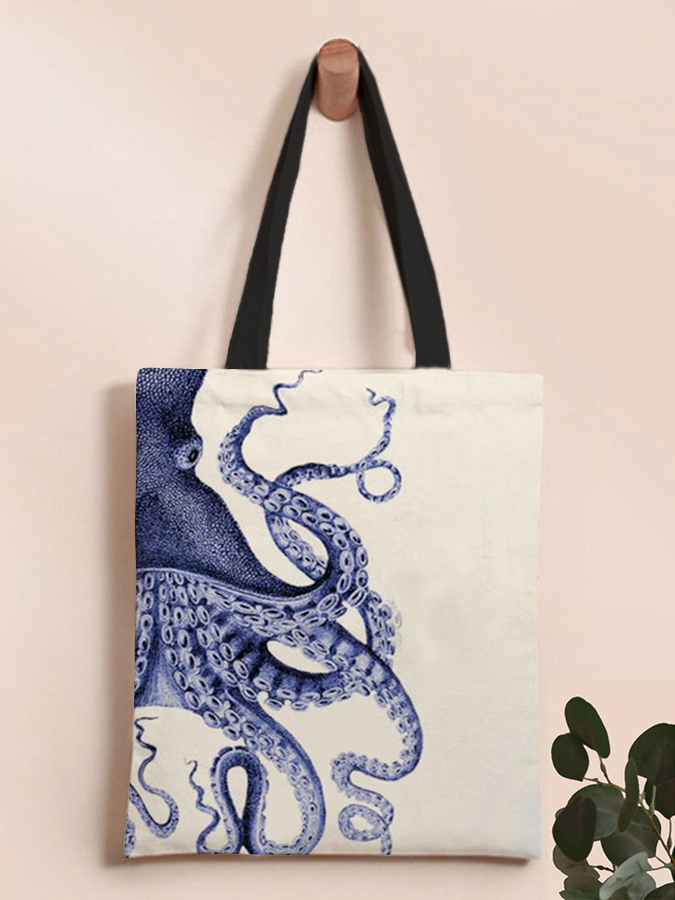 Retro Japanese Octopus Art Print Canvas Shoulder Crossbody Bag