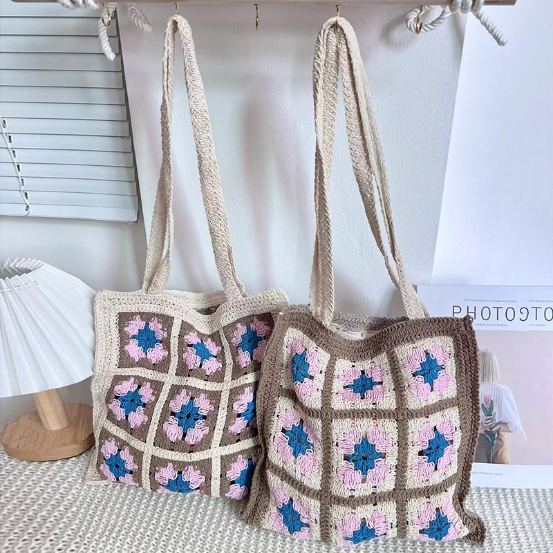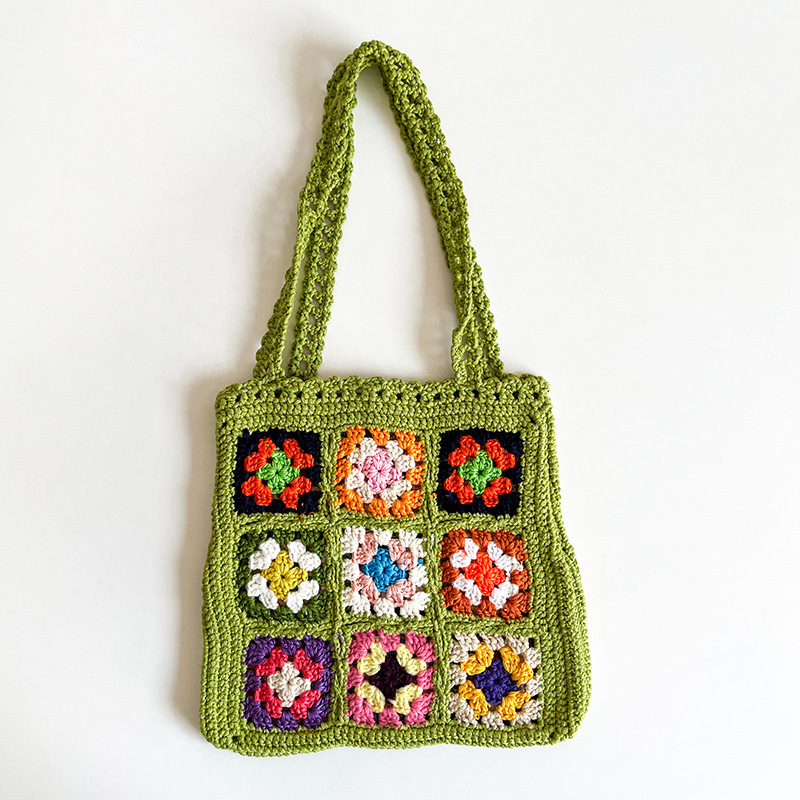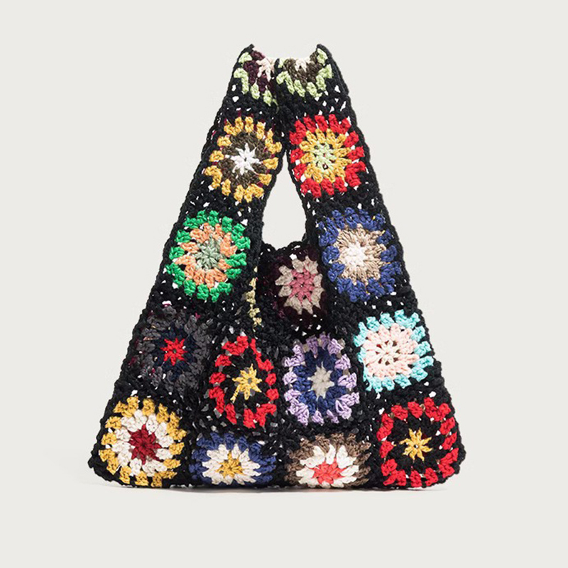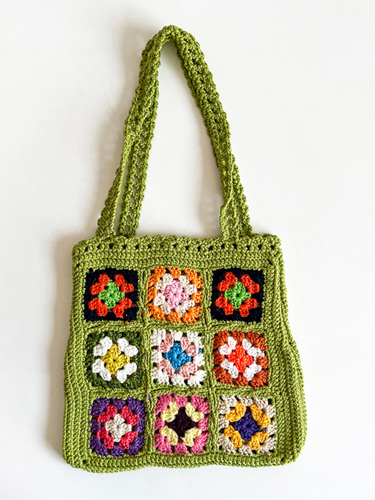 Handwoven Floral Patchwork Shoulder Tote Bag