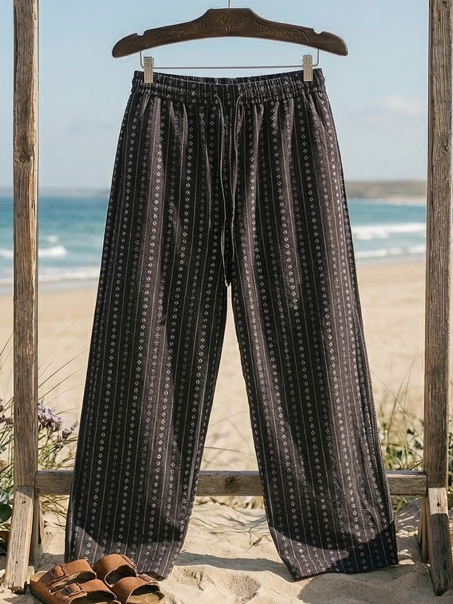 Men's Casual Simple Vacation Style Cotton And Linen Pants