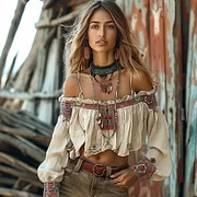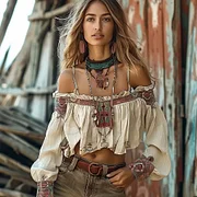 Women's Gypsy Print Sexy Long Sleeve Tank Blouse