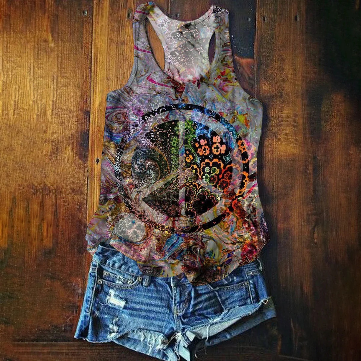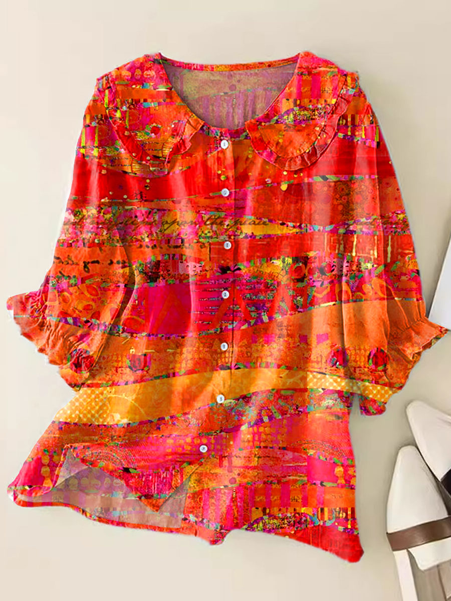 Women's Hippie Art Print Casual Cotton And Linen Shirt