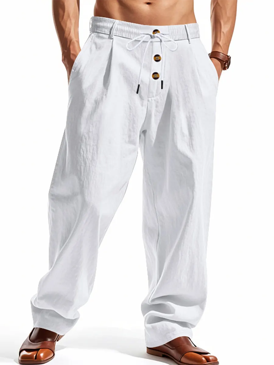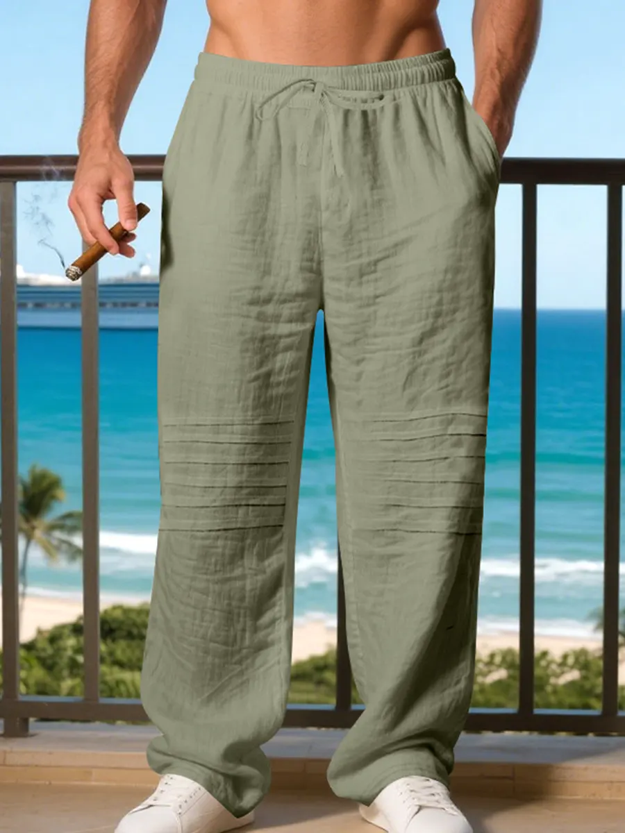 Men's Vacation Pleated Loose Fitting Simple Linen Casual Pants