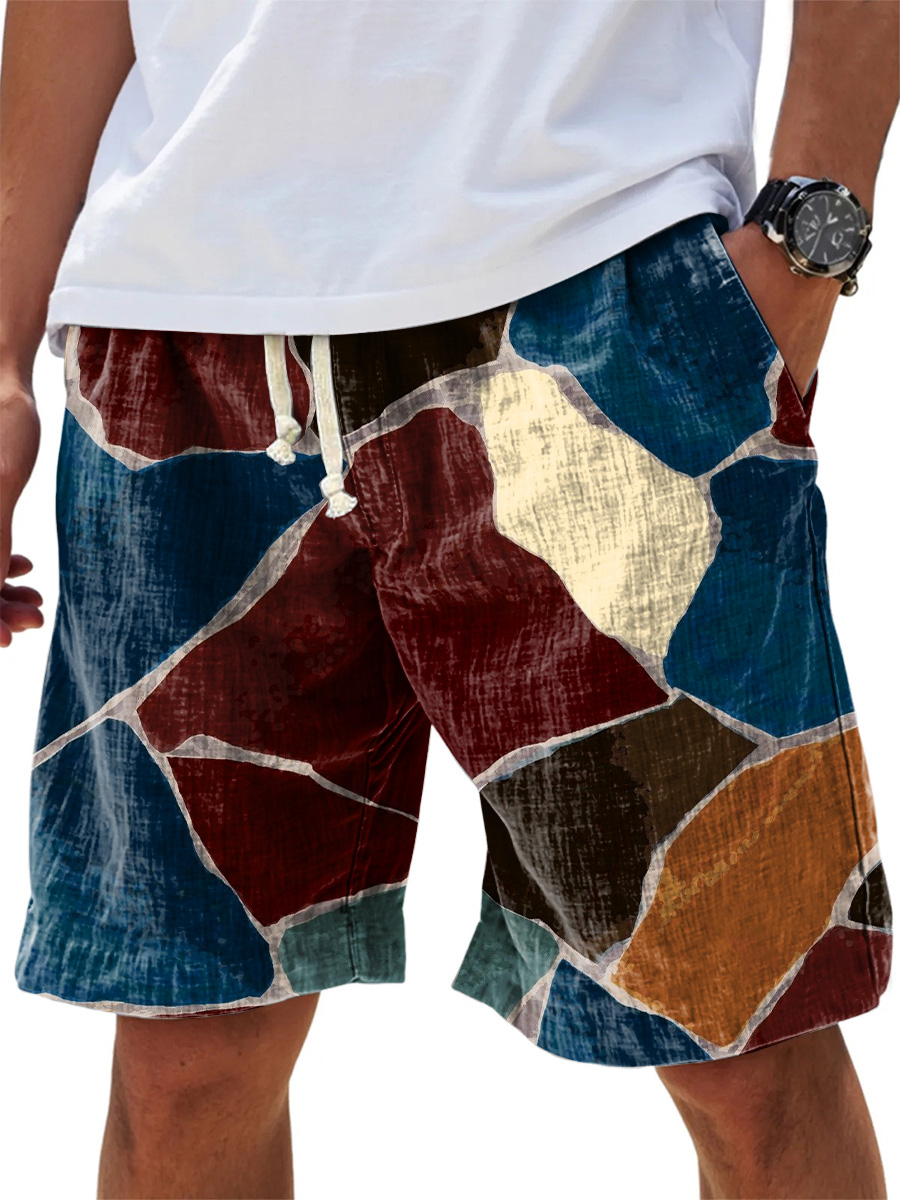 Decorative Pattern Of Fragmented Color Blocks Casual Linen Cotton Pants