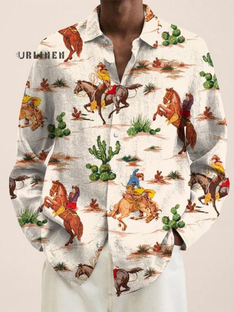 Retro Cowboy Rodeo Blouse Vintage Stripe Print 100% Cotton Long Sleeve Shirt