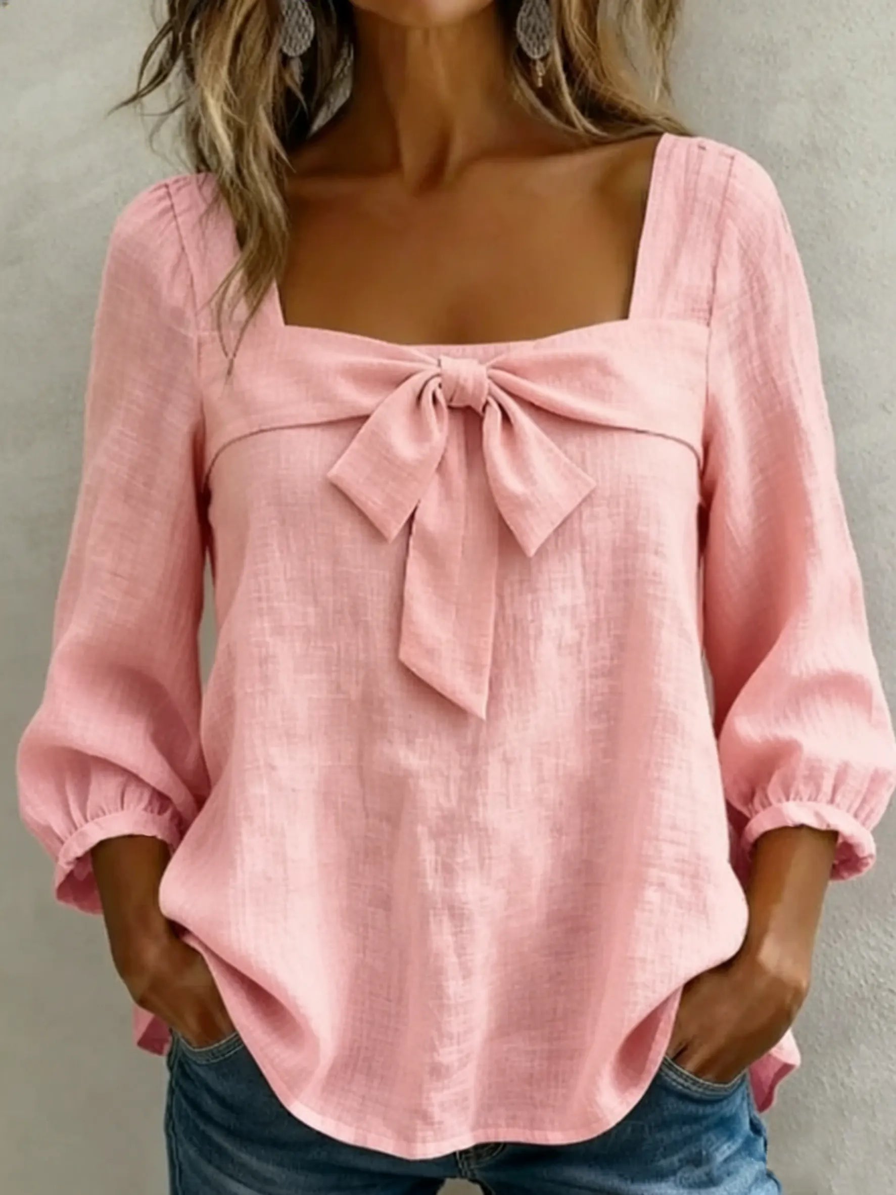 Women's Casual Square-Neck Top with Bow Detail