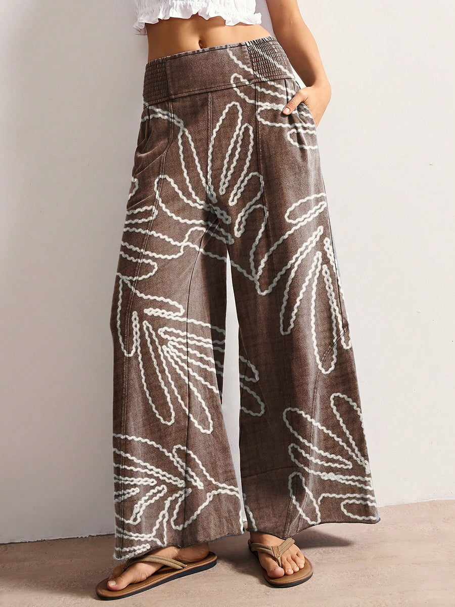 Women's Vintage Ethnic Pattern Art Print Stretch Wide-leg Pants