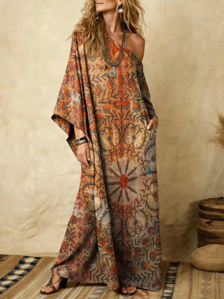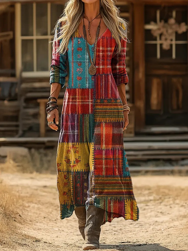 Women's Bohemian Patchwork Art Print Pocket Cotton Dress