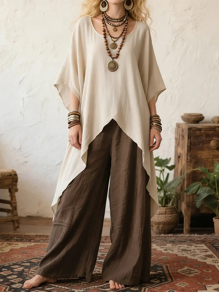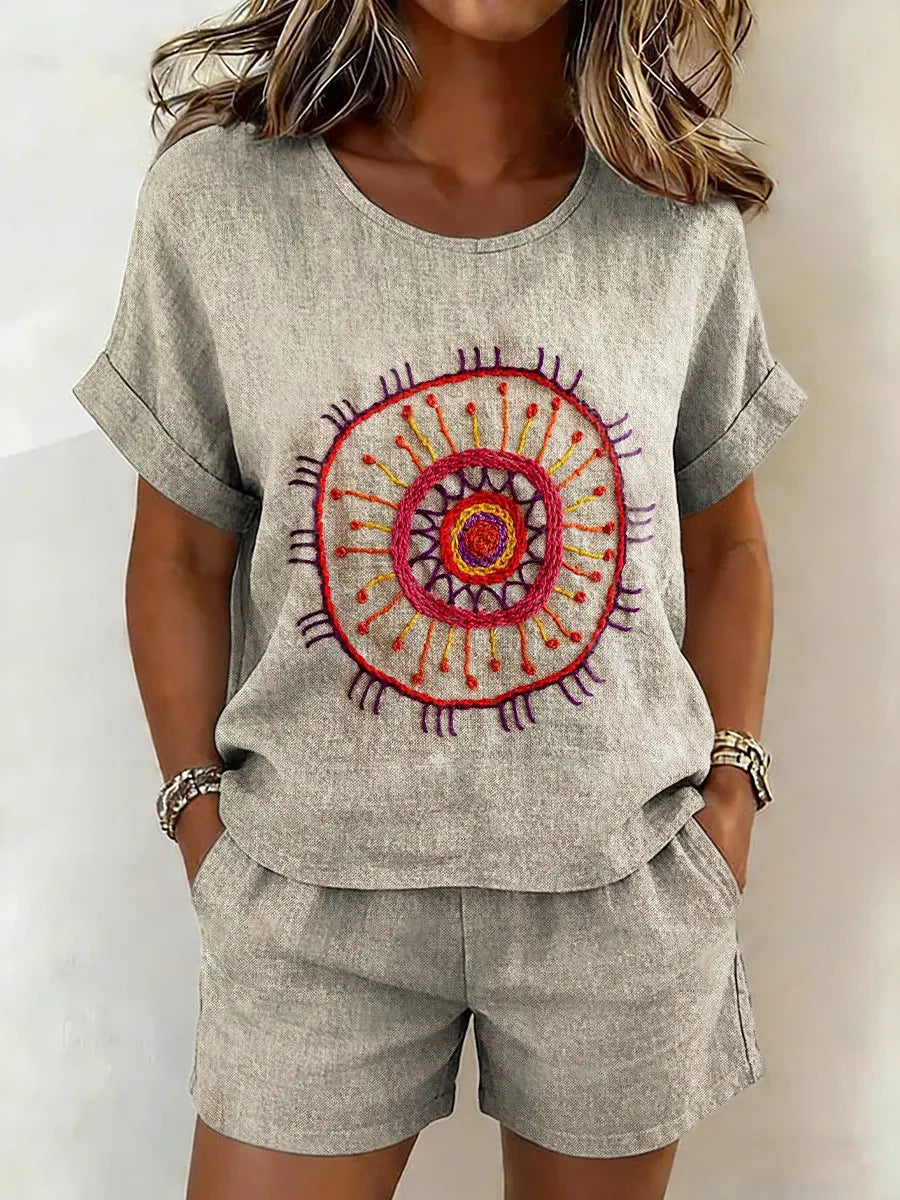 Women's Ethnic Art Prints Cotton Shirt & Shorts Two-piece Set