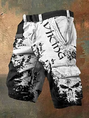 Men's Vintage Skeleton Dark Totem Print Casual Loose Pocket Cargo Shorts