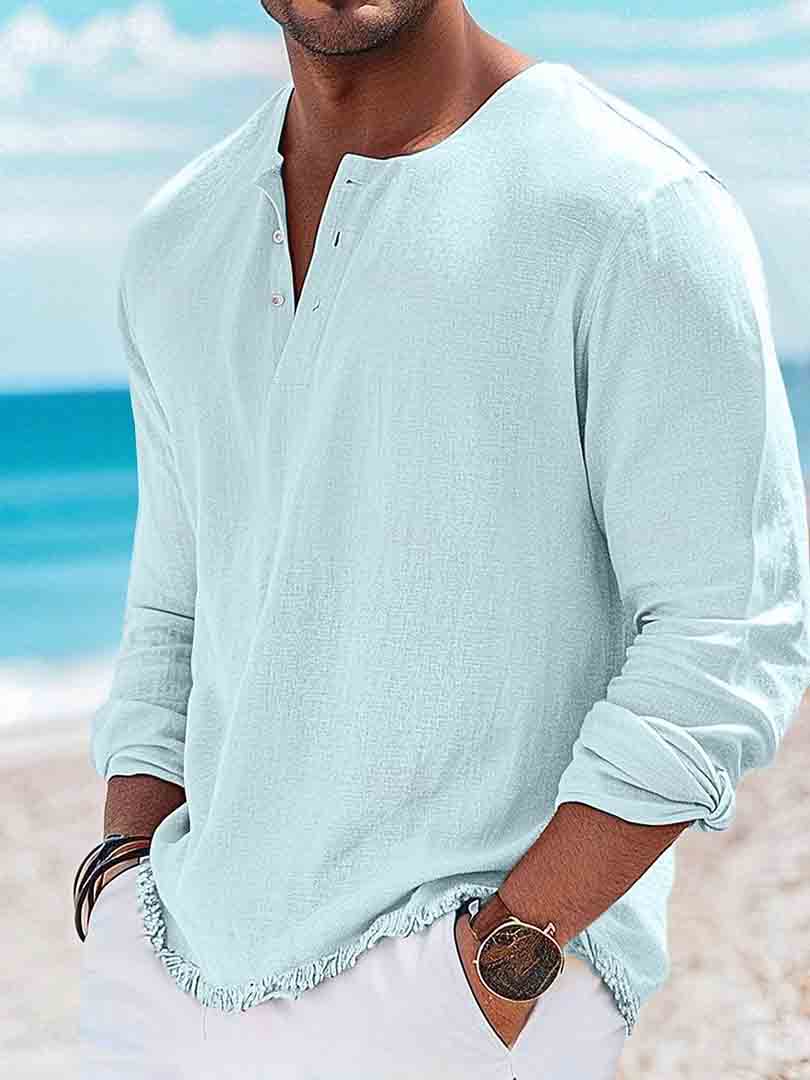 Men's Henley Shirt Tee Henley Top Linen T-shirt Long Sleeve