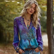 Women's Retro Viking Celtic Tree Of Life Pattern Casual T-shirt