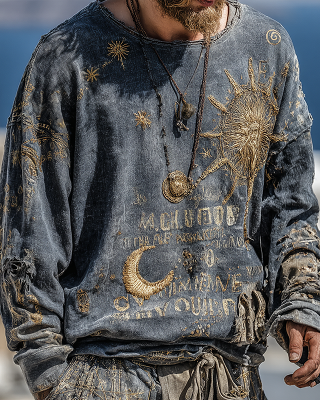 Men's casual star and moon 3D embroidered long-sleeved top 56b4