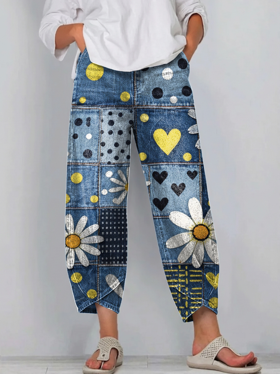 Women's Patchwork Pattern Print Print Casual Cotton Denim Pants