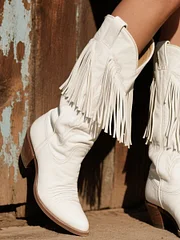 【24-hour shipping out】Women's Western Embroidered Tassel Leather Cowboy Boots