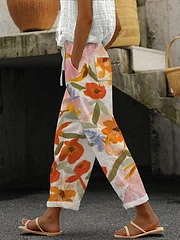 Women's Botanical Floral Print Lace-Up Loose Casual Pants