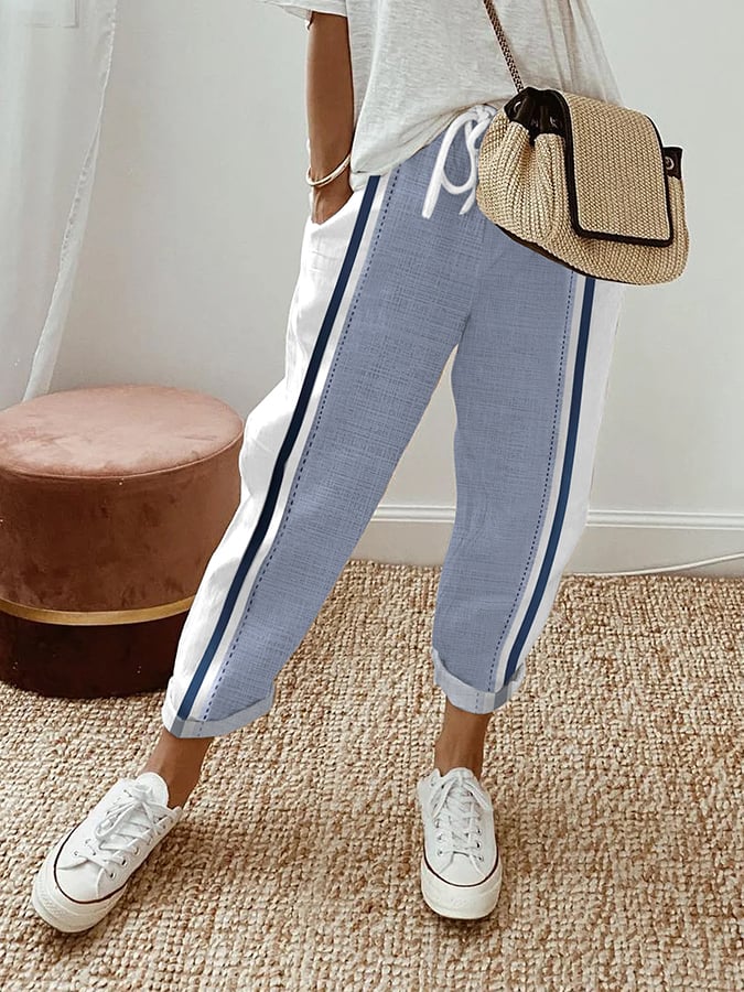 Women's Striped Colorblock Printed Lace-Up Loose Casual Pants