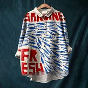 Women's Fashion Fresh Sardines Art Print Casual Lapel Blouse