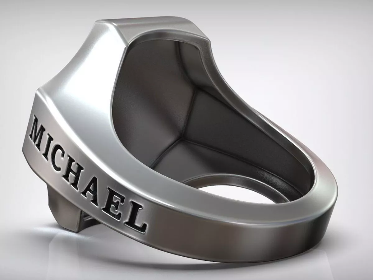 • Text: The side of the ring is engraved with the letters "MICHA", which is likely an abbreviation for Michael. This inscription further reinforces the theme of the ring, connecting it to the archangel Michael and his significance in religious lore.