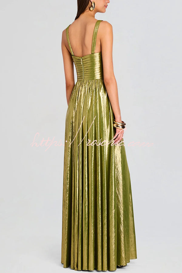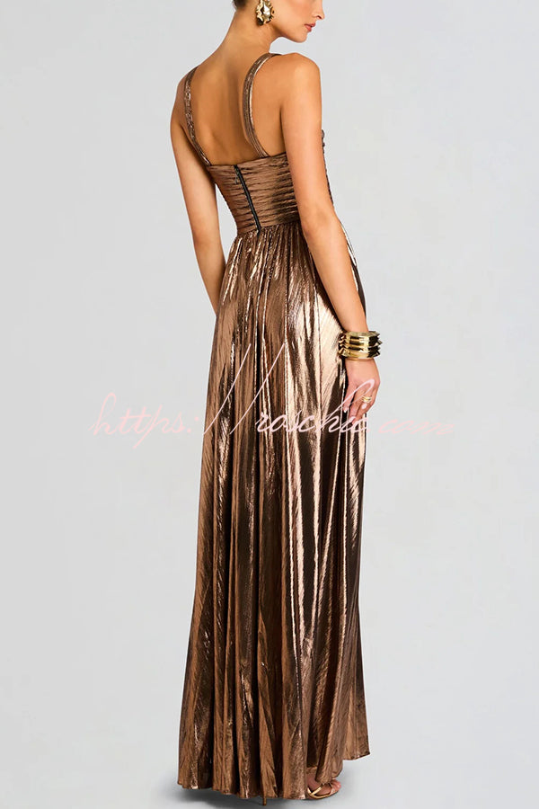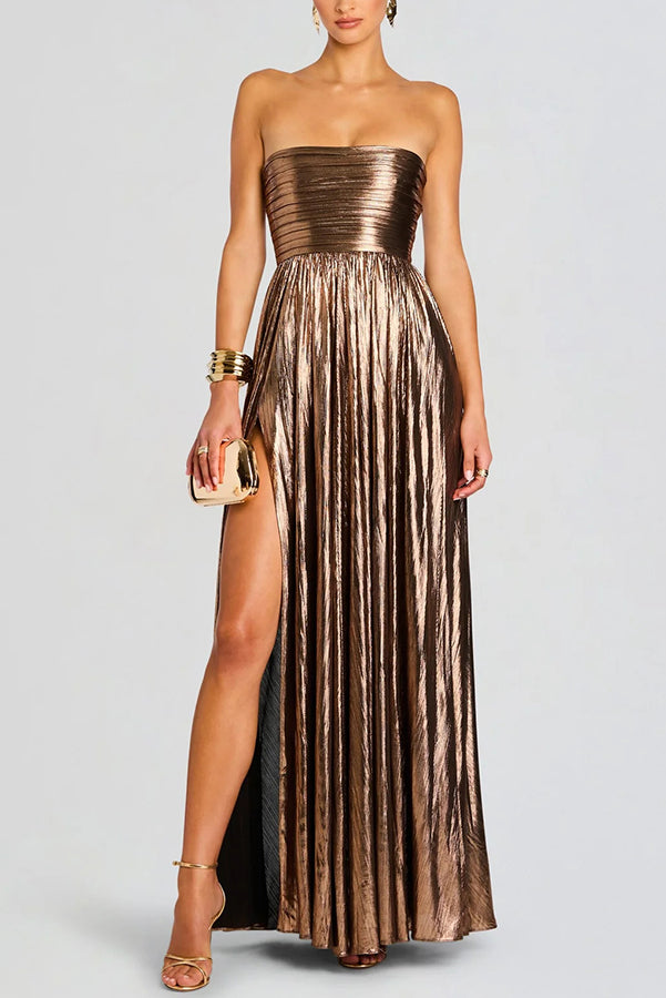 - This stunning lamé gown exudes luxury and sophistication, featuring a sensual leg slit and removable straps for a versatile and elegant look.Our distinctive clothing will add instant style to your wardrobe .