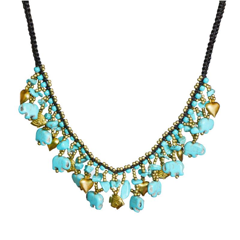 - Material: Turquoise, copper beads, wax rope, copper bells, copper fittings