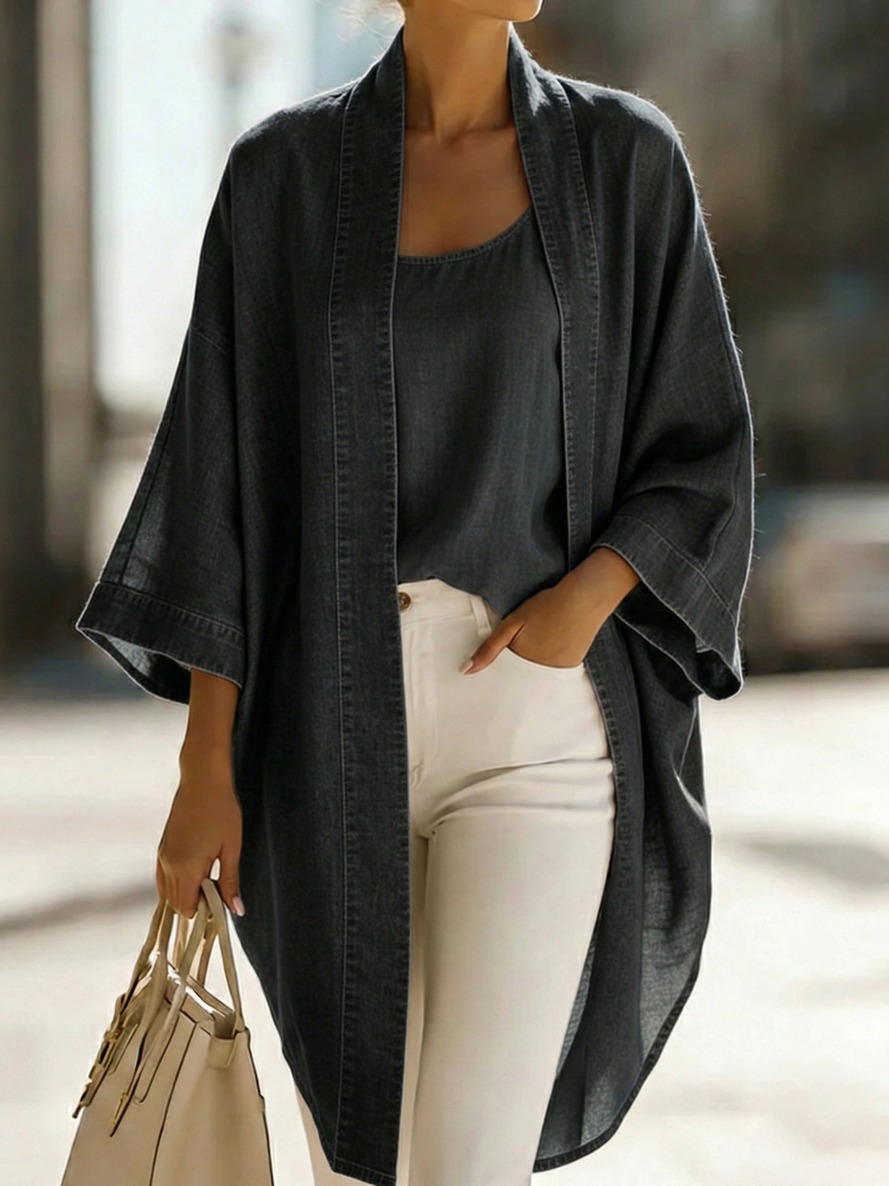 Effortlessly elevate your everyday wardrobe with this casual denim two-piece set, designed for women who love comfort with a touch of timeless style.