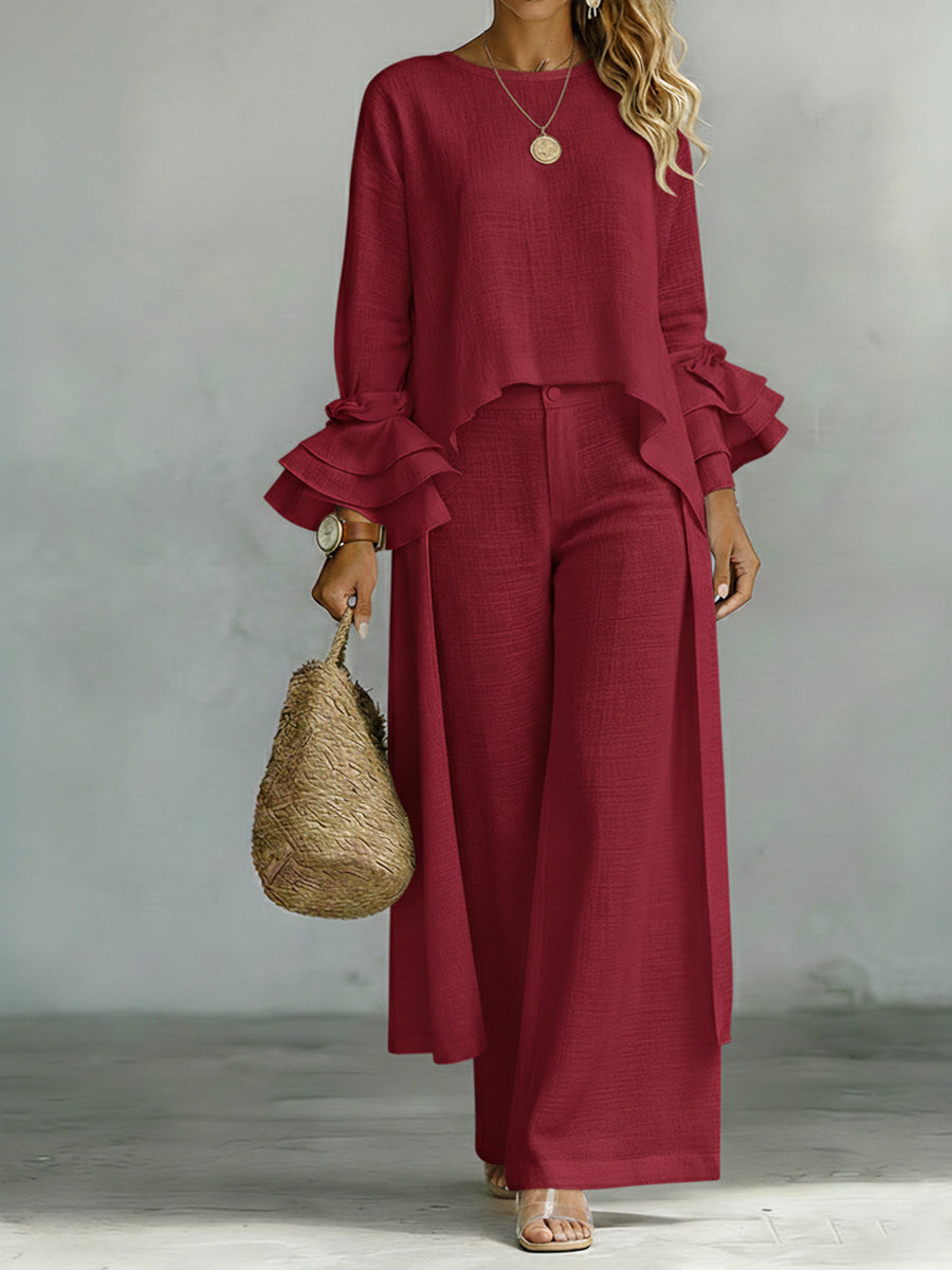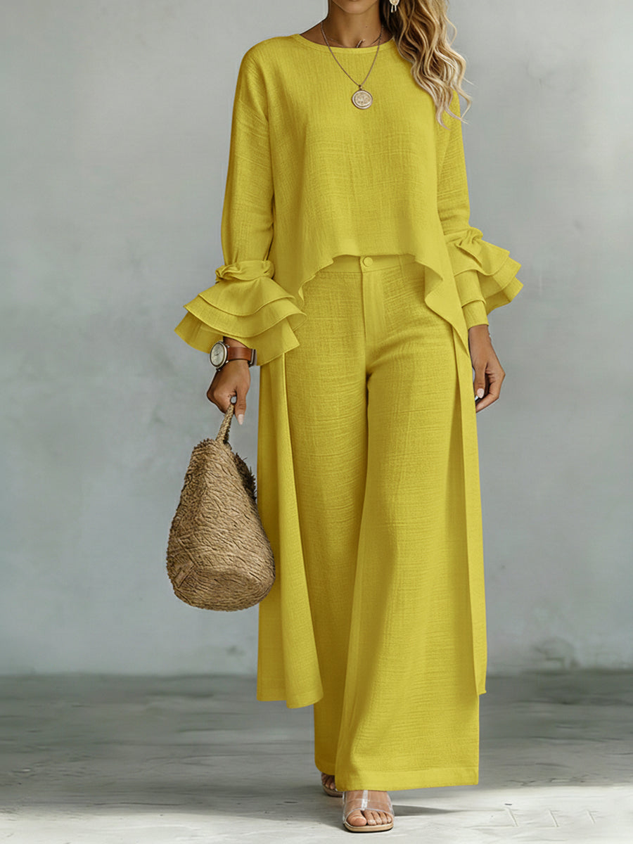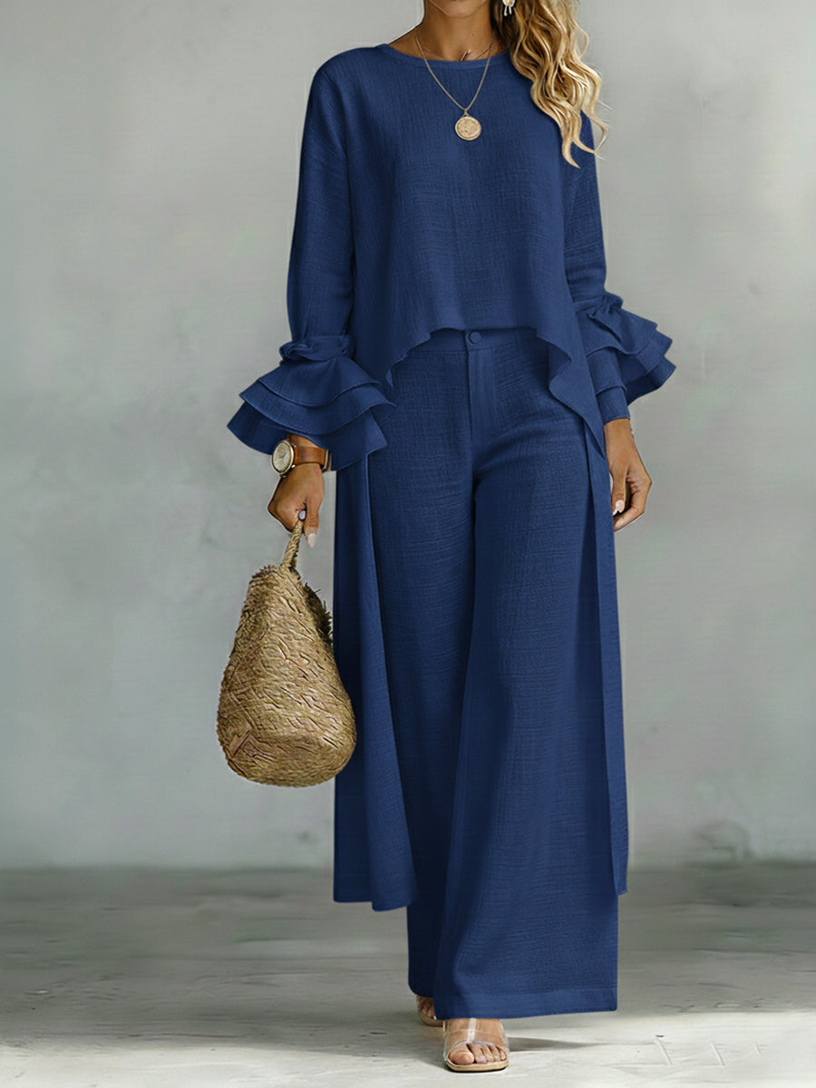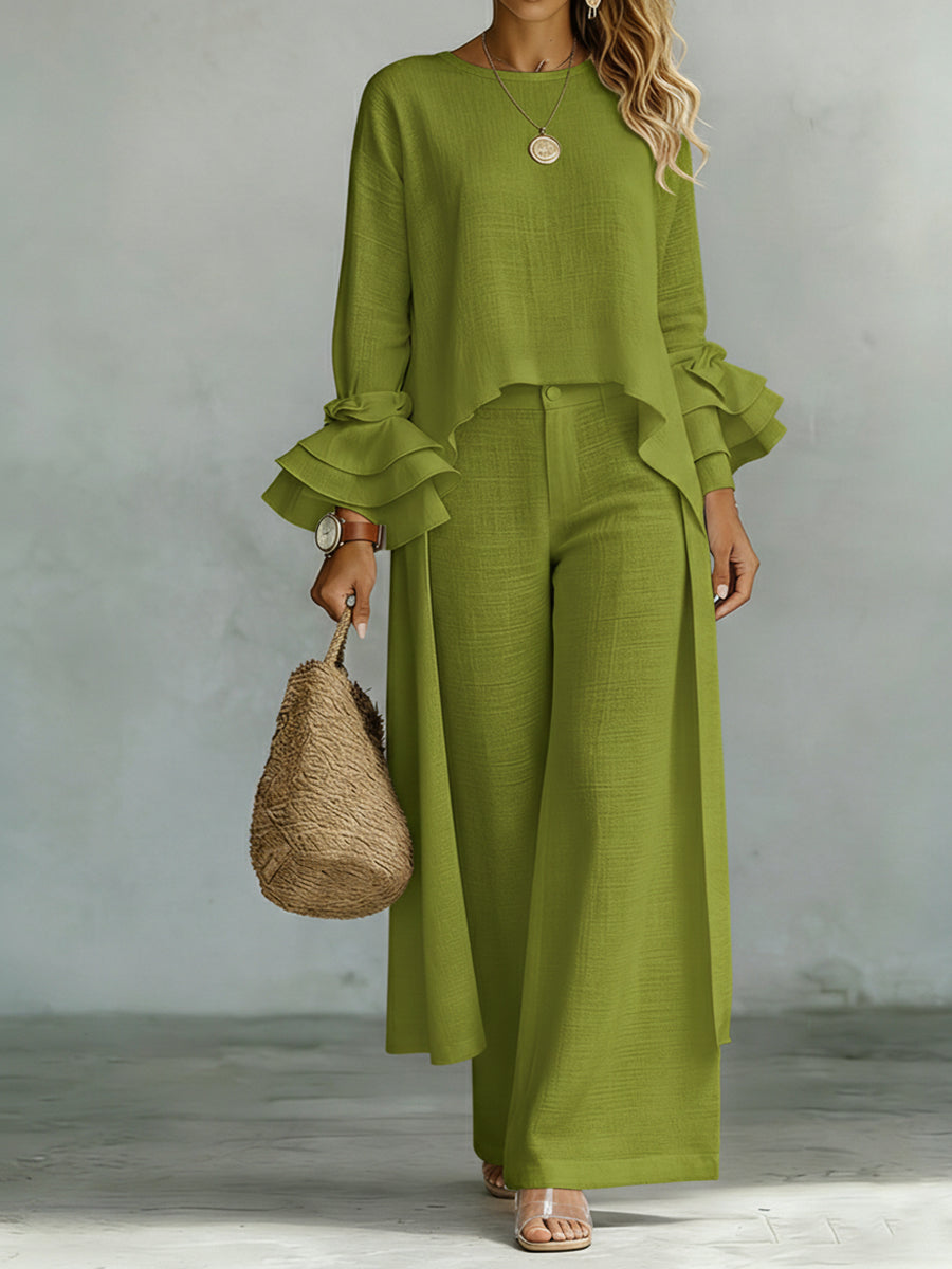 Casual Linen And Cotton Top And Pants Two-piece Set