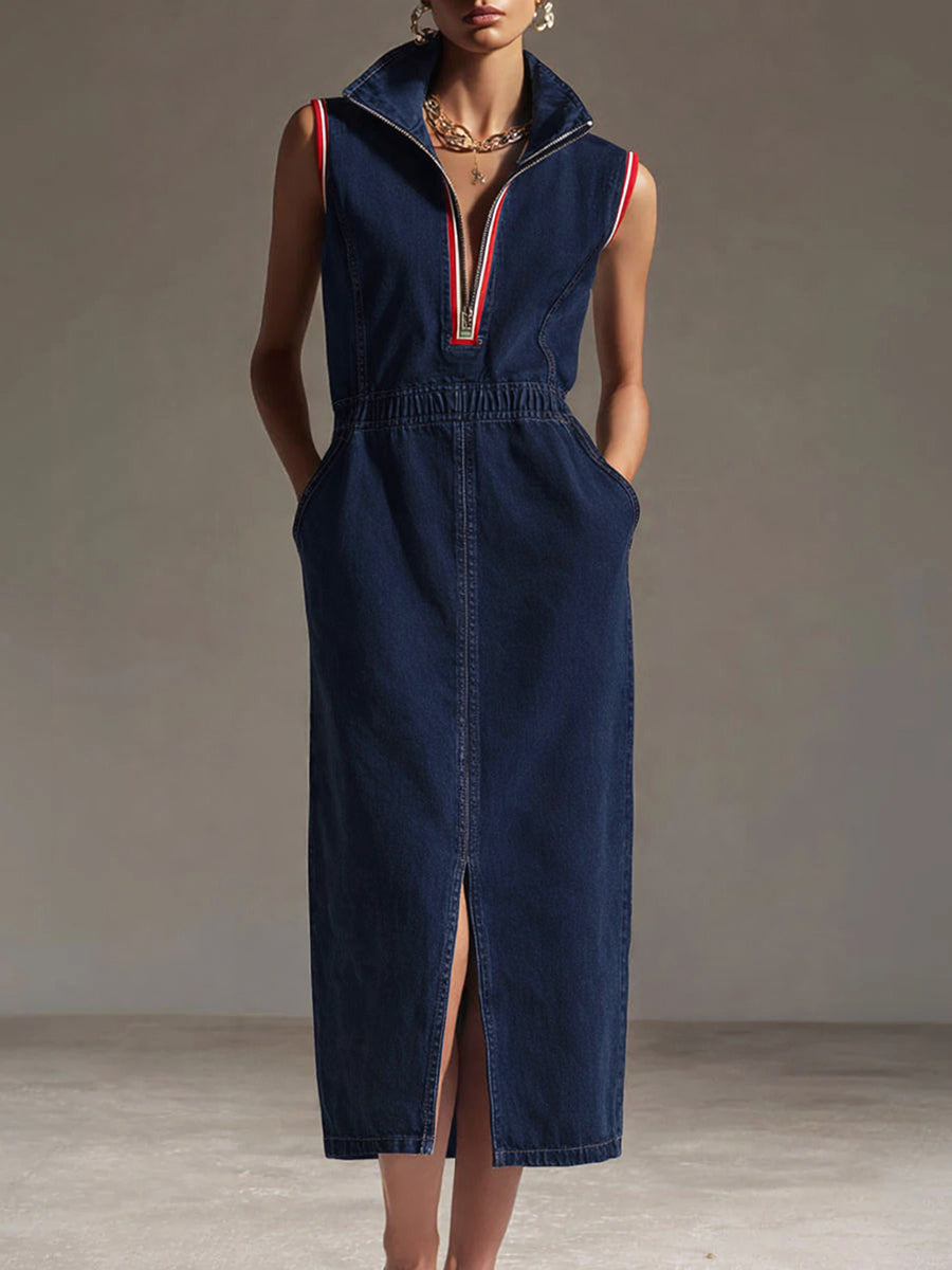 Casual Zipper Denim Sleeveless Dress