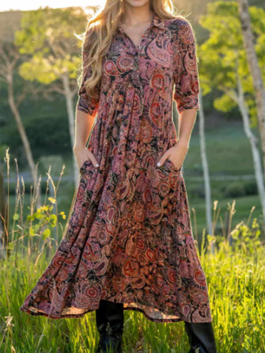 Comfortable Paisley Print Shirt Midi Dress