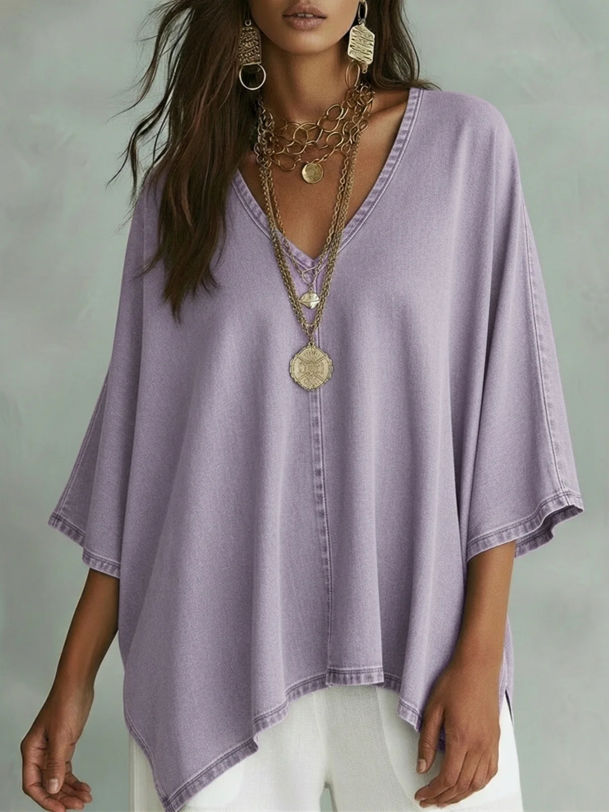 The V-neckline adds a flattering touch while keeping the style modern and relaxed.