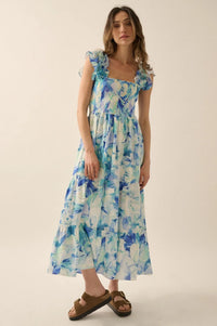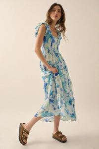 - Floral-print midi dress.