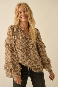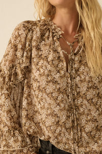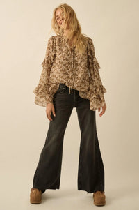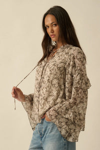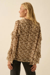 Embrace Me Floral Chiffon Ruffle Bell-Sleeve Top